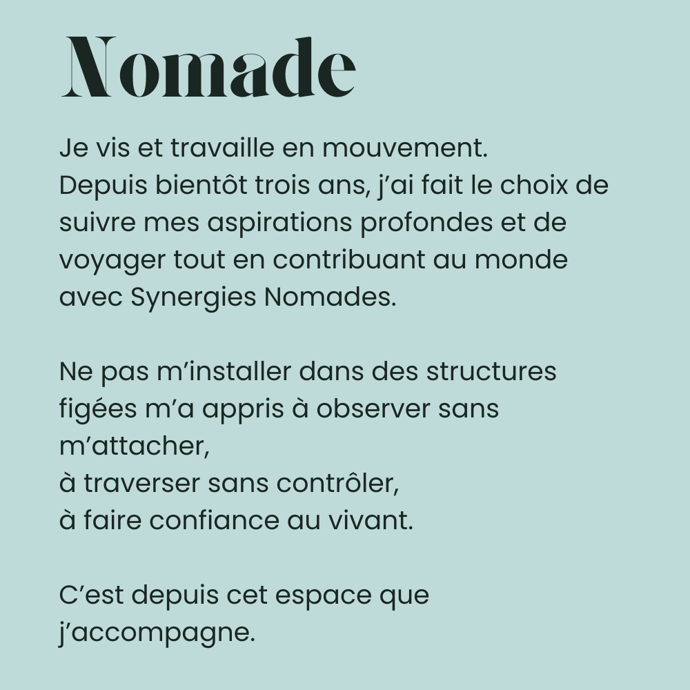Bienvenue chez Synergies Nomades.